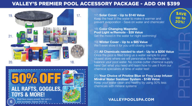 On top of all hot tub sales this will be the last sale of the season on all in-stock above ground swimming pools! Save 25% or more! Many sizes and models still in stock with added bonuses! During the Christmas in July Sale at Valley Pool & Spa you will be upgraded to the Premier Pool Package which includes a winter cover, solar cover, pool light, start up chemicals, your choice of mineral system, family game combo and much more! Another added bonus is the heavy-duty step unit to replace the usual A-frame ladder included with the complete pool package, a $599 value.