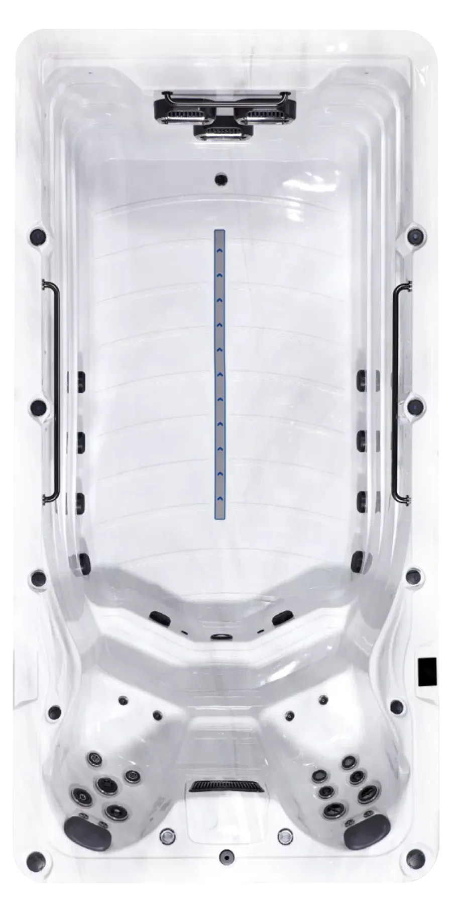 Although the Eros is one of our more compact swim spas, with it’s river jet counter current system, there is still ample space for swimming or relaxing.