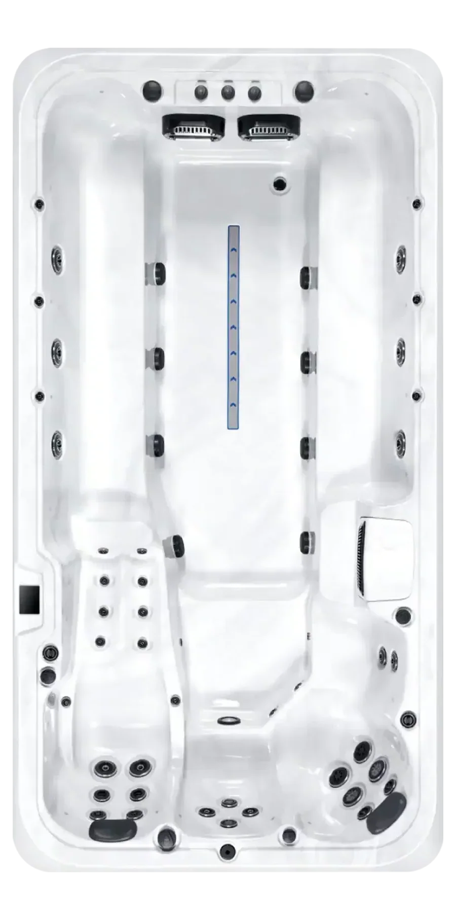 Ideal for family fun or serious fitness enthusiasts, the Titan swim spa combines a powerful swim current with luxury hot tub features. Its 38 jets deliver a dynamic and soothing hydrotherapy experience. Whether you’re swimming against the current, enjoying a relaxing soak, or engaging in low-impact exercises like walking, the Titan offers the perfect environment for all.