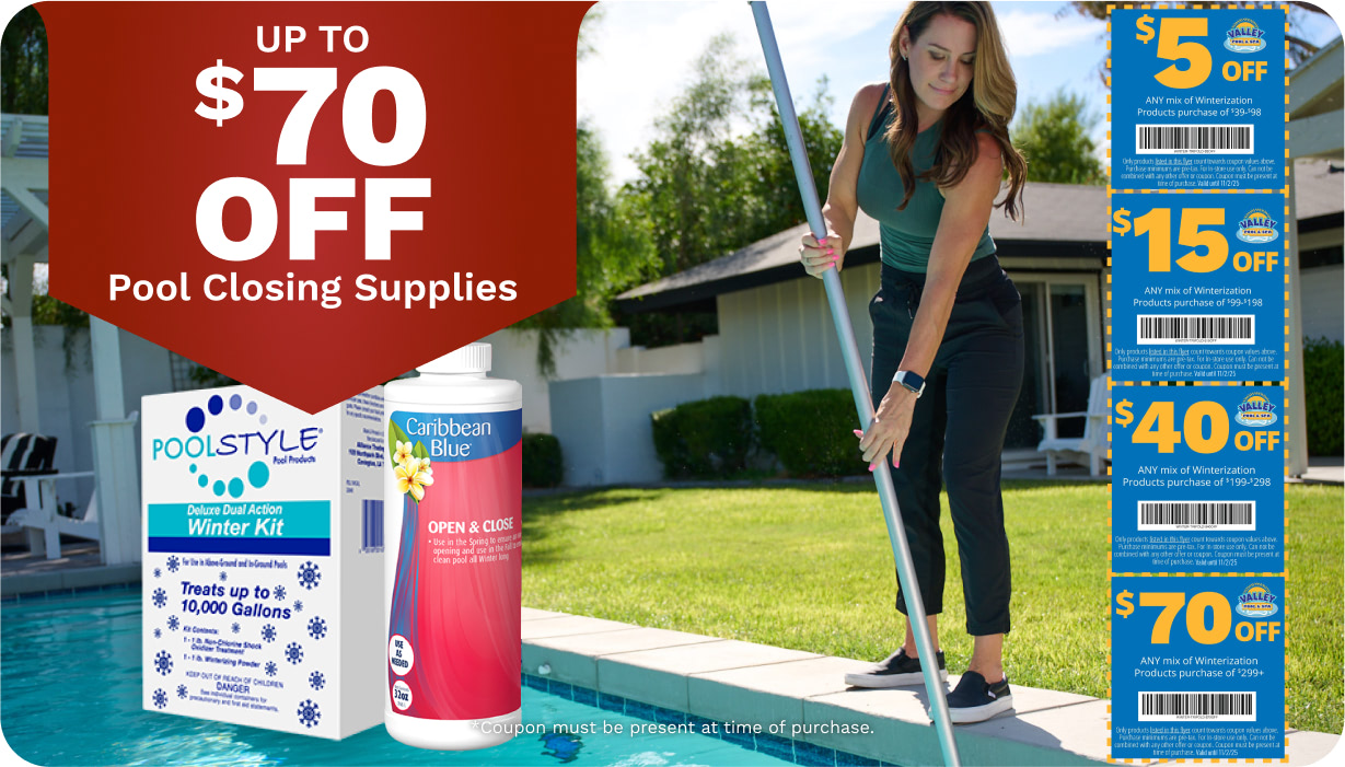 In-Store Promotions and Coupons Want to use a deal or coupon in our stores? Just show from your phone, or you can just mention our website deals! No need to waste ink and paper to print! In-store only! While supplies last! Visit us today at any of our 10 locations. Find Your New Pool Liner Here Find Your New Hot Tub Here Find Your New Pool Here